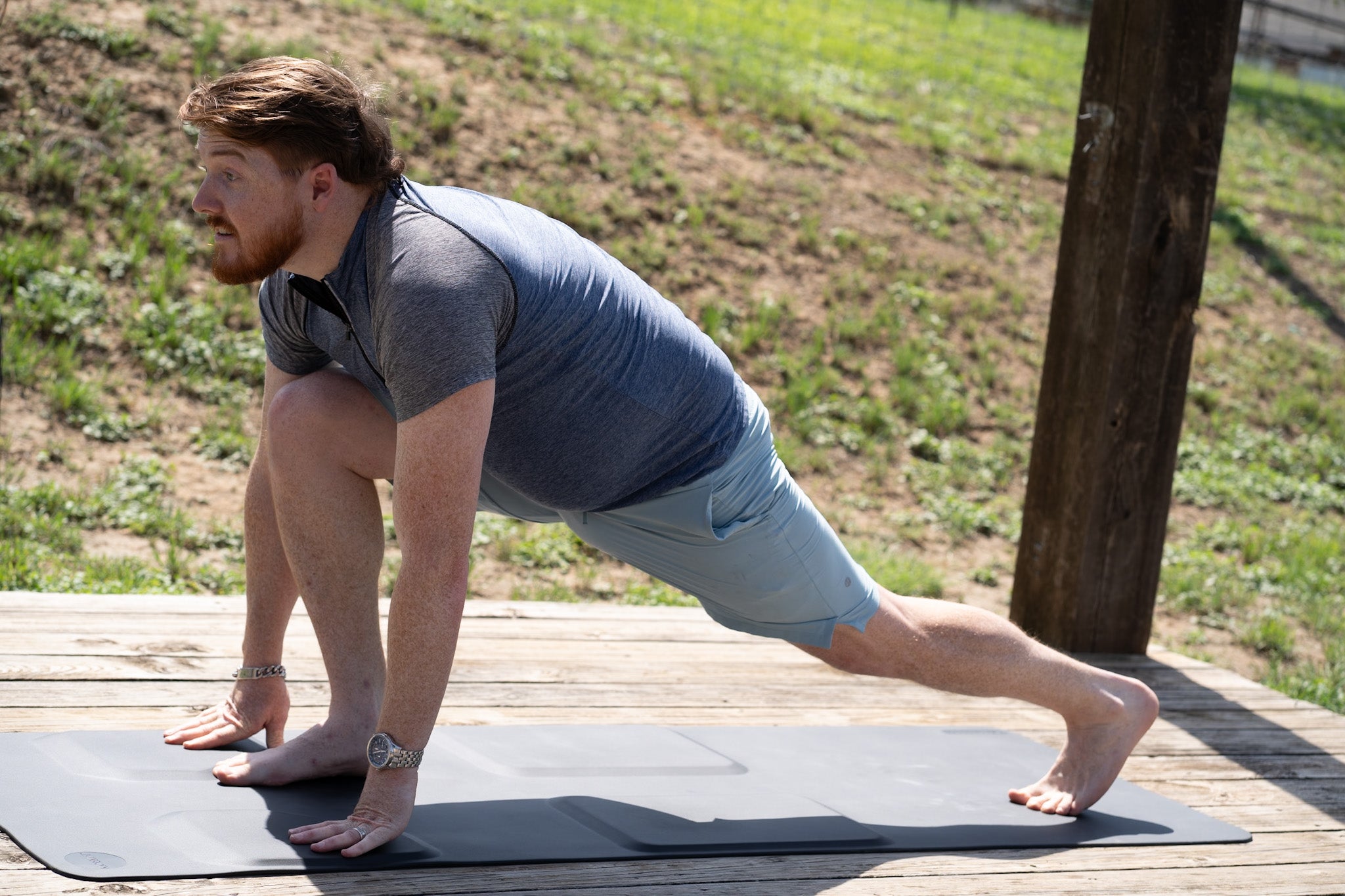 Targeted support built into the mat absorbs impact — so your body can move with ease.